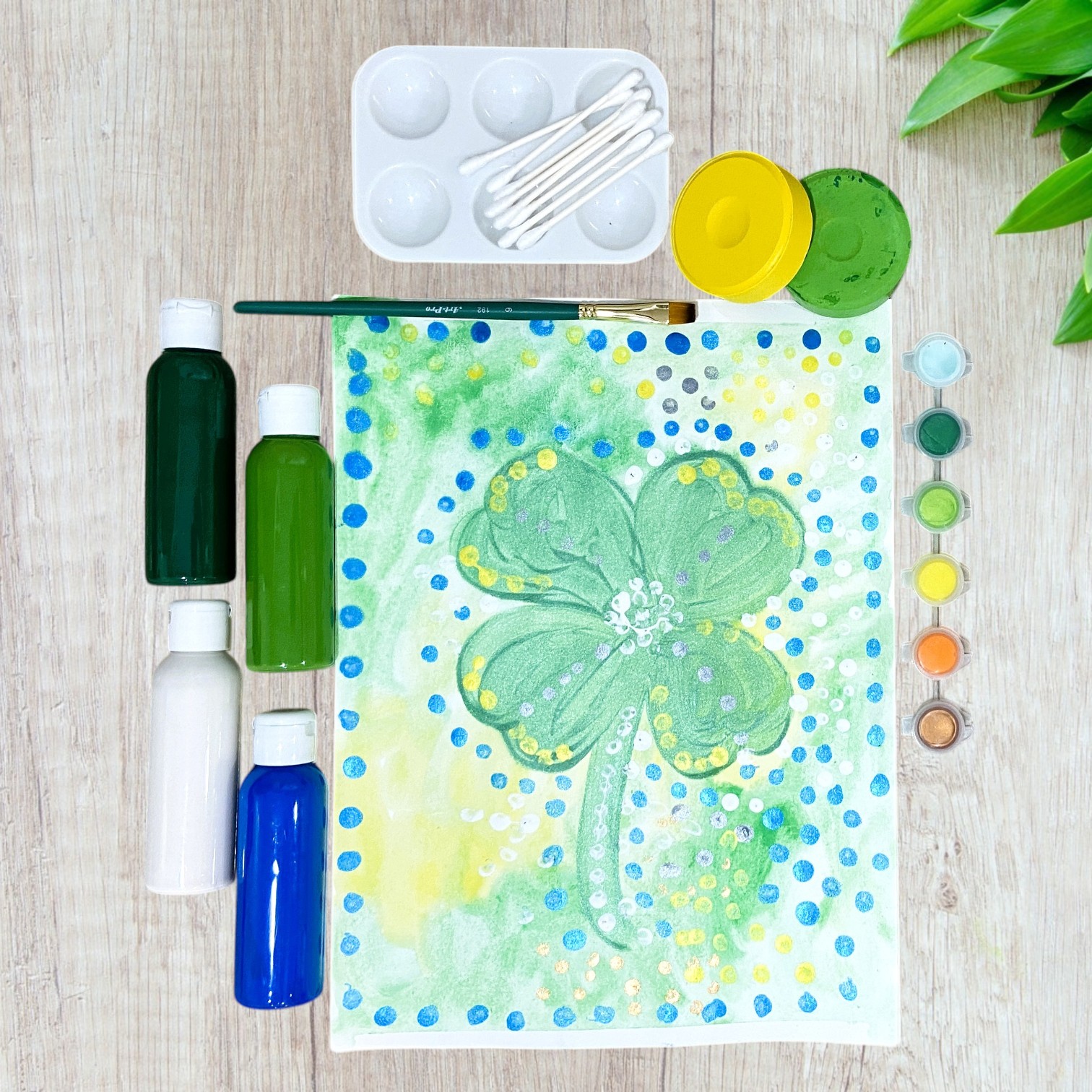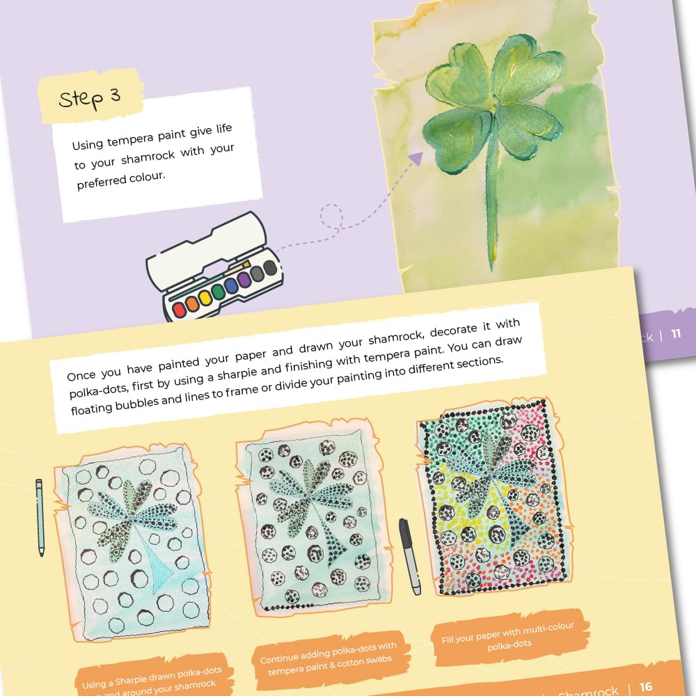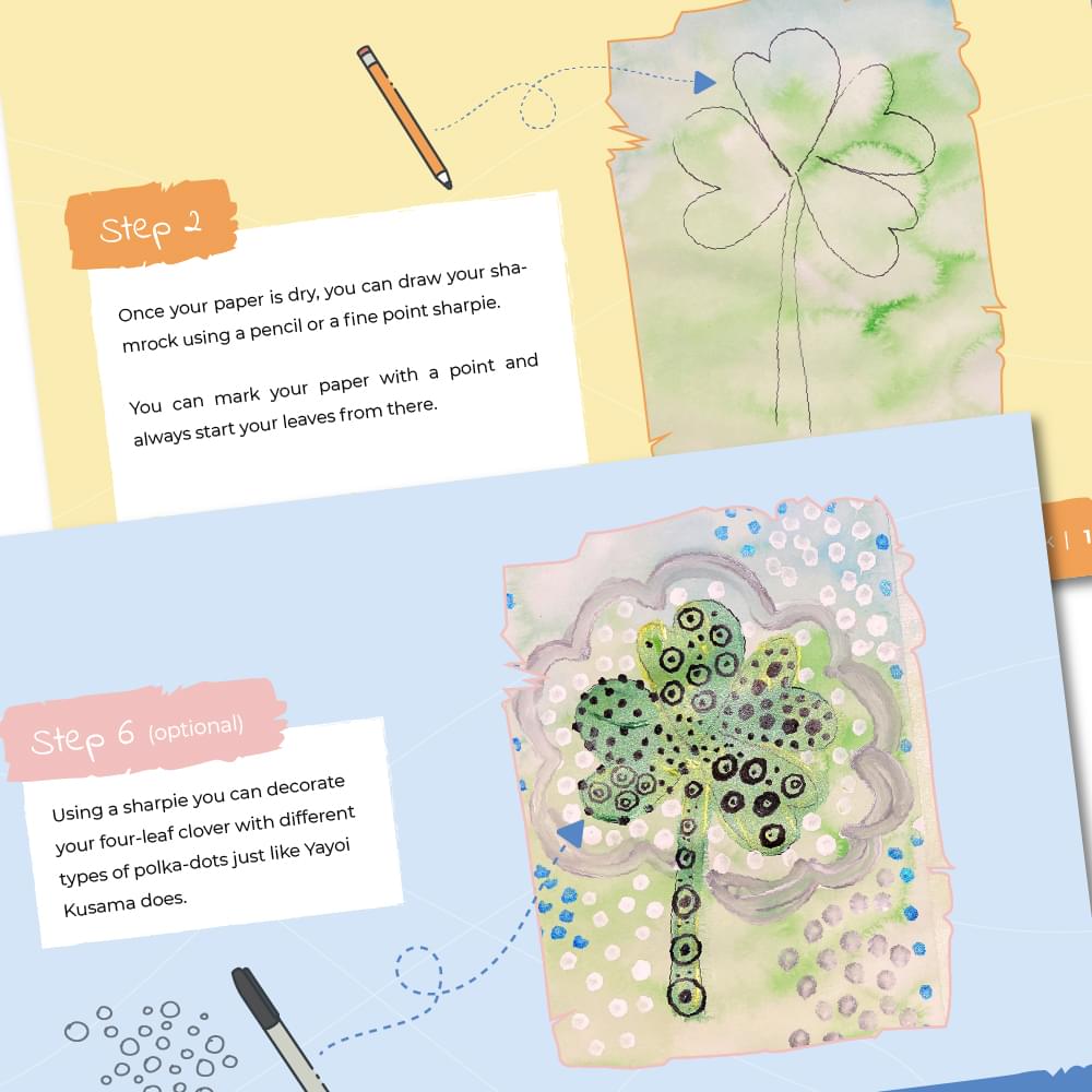 Description: Let the artist in your children shine! Let them be colourful with watercolour and metallic paint to create a beautiful composition of a lucky shamrock inspired by the style of famous artist Yayoi Kusma. Say goodbye to the stress of gathering supplies and figuring out where to begin. This all-inclusive kit comes with everything you need, from high-quality materials to easy-to-follow instructions, so you can focus on what matters most – letting your child’s creativity flow. This box is designed to foster creativity, enhance sensory experiences, promote fine motor skills and improve organizational and planning skills while enjoying the therapeutic benefits of artmaking. BE COLOURFUL AND HAVE FUN!